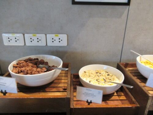 コーンフレークも何種類かあり、この後ろにあるヨーグルトを添えて。